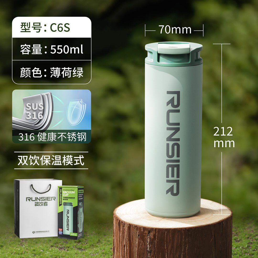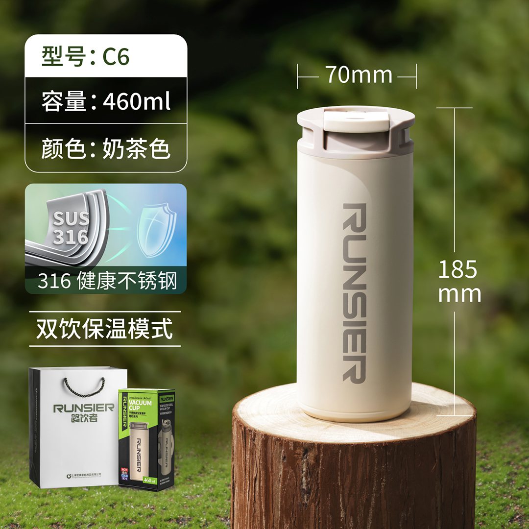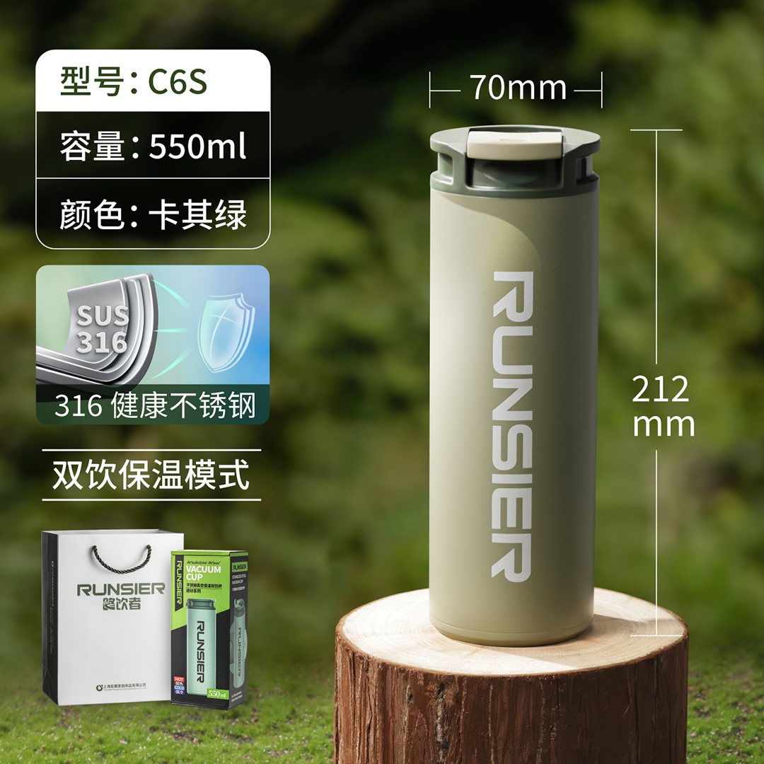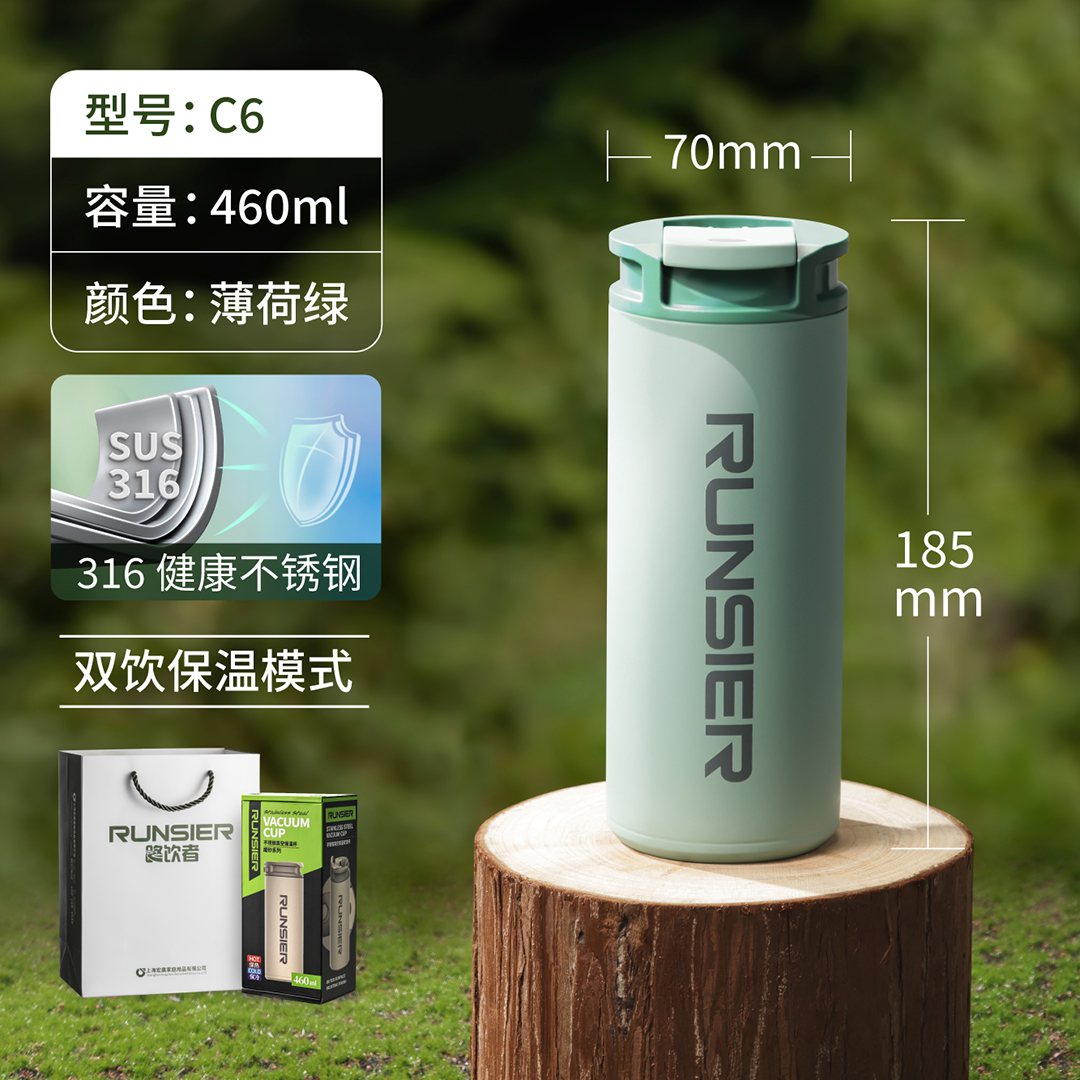路飲者不銹鋼真空保溫雙飲杯 C6-卡其綠、薄荷綠、奶茶色、雅致黑:¥263 C6S-卡其綠、薄荷綠、奶茶色、雅致黑:¥270